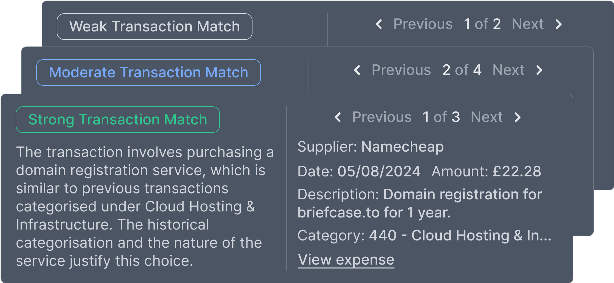 Learns from the last 12 months of ledger data, adapts as you make changes, and matches similar transactions—no supplier rules needed.