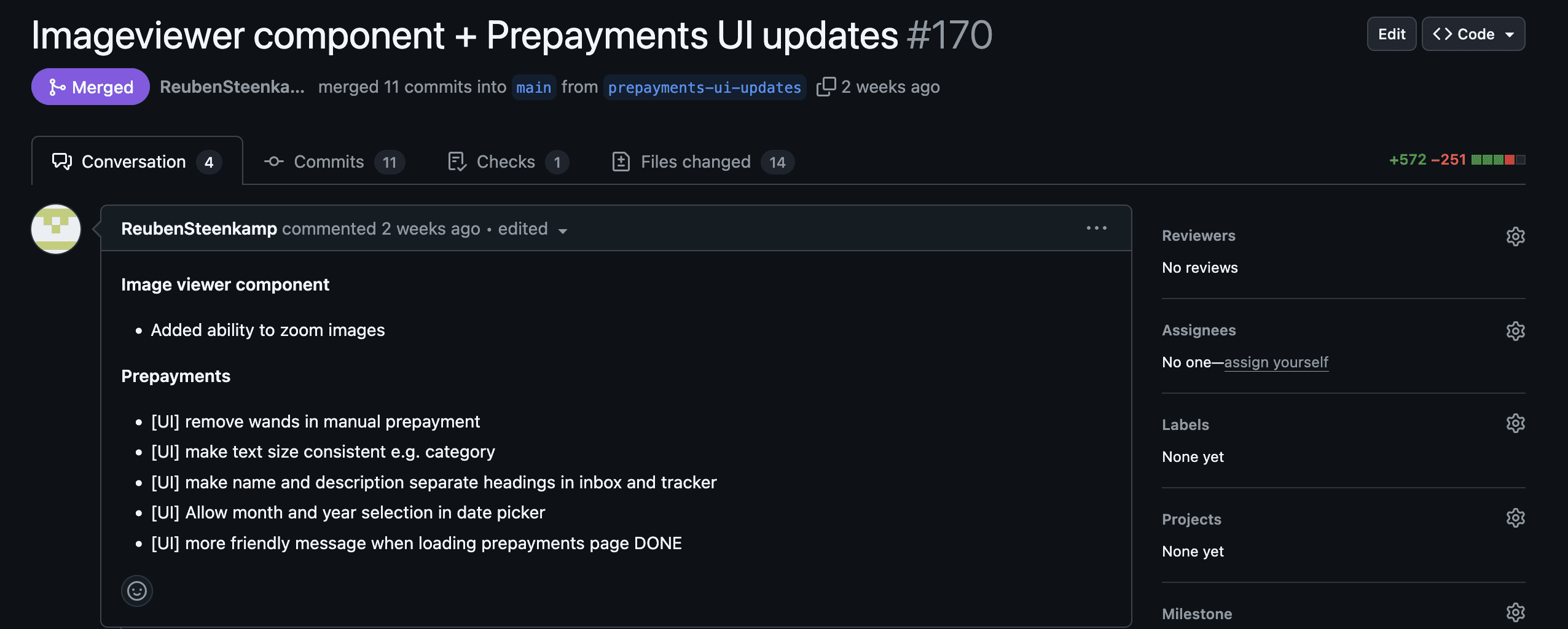 Here are few of Reuben’s UI changes that introduced an entirely new FE component, used it in multiple places, and refactored other UI bits: